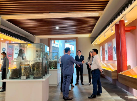 萬谷集團(tuán)一行在集團(tuán)主席、文旅部的引領(lǐng)下先后參觀了養(yǎng)生健康館、彭氏名人館、廣東南藥館、名貴藥材館、衍生館、生產(chǎn)車間等。期間與企業(yè)負(fù)責(zé)人深入了解了衍生健康醫(yī)藥產(chǎn)業(yè)園的發(fā)展歷程、產(chǎn)品研發(fā)、生產(chǎn)銷售、研學(xué)旅游等企業(yè)概況。經(jīng)過現(xiàn)場(chǎng)考察、溝通交流后萬谷集團(tuán)對(duì)衍生健康產(chǎn)業(yè)園的高標(biāo)準(zhǔn)的建設(shè)、高效能的運(yùn)營給予了高度評(píng)價(jià)和贊賞。